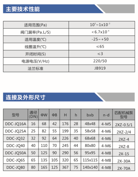 DDC-JQ型系列电磁真空带充气阀是安装在机械式真空系上的专用阀门。阀门与泵接在同一电源上,泵的开启与停止直接控制了
