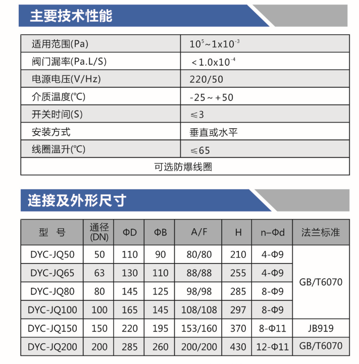 DYC-JQ型系列电磁真空压差式充气阀是安装在机械真空泵上的专用阀门。安装于机械真空泵的进气口,并与泵同步开启和关闭。当泵停止工作或电源突然中断时,阀门能依靠大气与真空的压差力使阀板自动关闭,将真空系统封闭,保持其真空度,并将大气通过阀的节流孔充入泵腔内,从而避免泵油逆流污染真空系统。