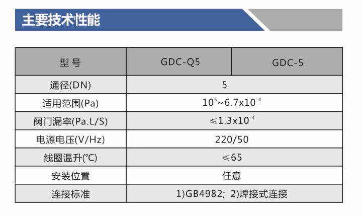 GDC-Q5型、GDC-5型真空阀适用的工作介质为洁净的空气和非腐蚀性气体。