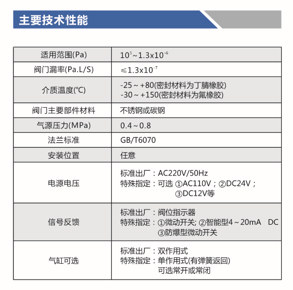板的密封圈夹紧,有微调主密封功能。是目前一种新型的气动执行器控制的气动高真空蝶阀,分为双作用和单作用(弹簧复位)气