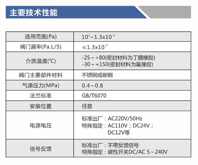 适用的工作介质为空气和非腐蚀性气体。