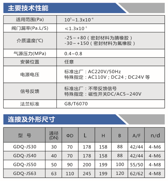 GDQ-JS三通式气动高真空挡板阀是以压缩空气为动力,通过控制气动元件来改变气路方向,双路接口,气缸驱动使挡板阀作启闭